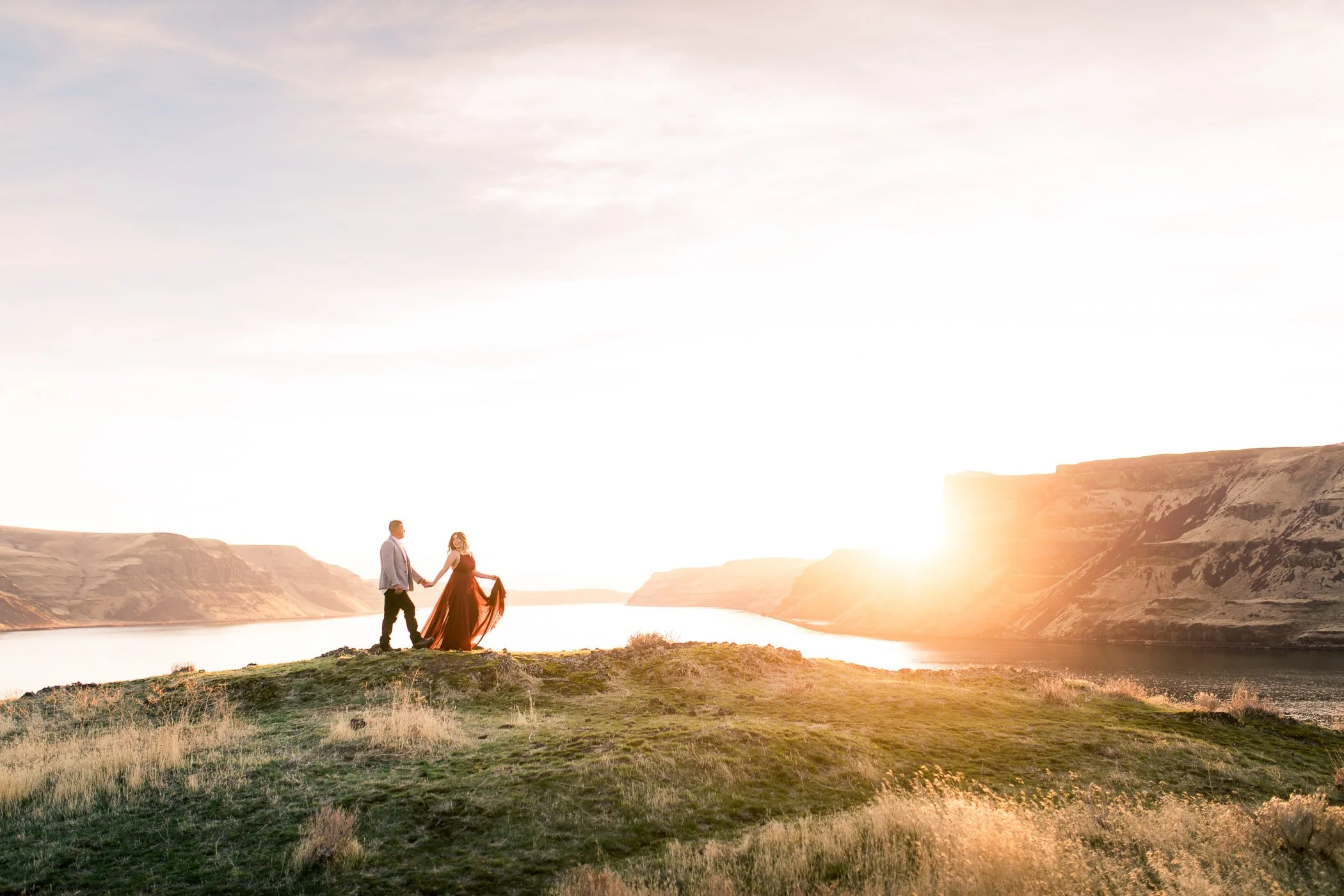 Wallula Gap is unlike anything else in the area, where towering basalt cliffs meet panoramic views of the Columbia River. The landscape is raw and dramatic, shaped by ice age floods thousands of years ago. It feels especially well suited for engagement sessions or after-wedding adventure sessions where you want something that feels bold and cinematic.